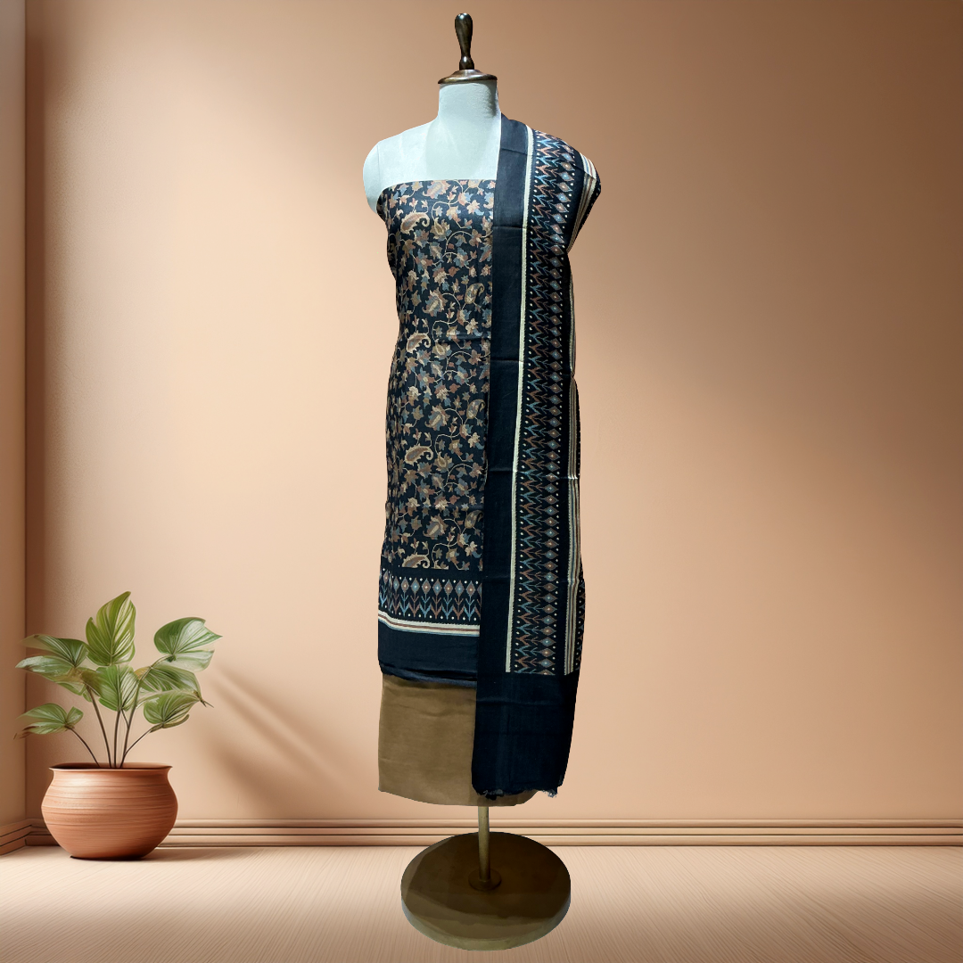 HANDLOOM PASHMINA SUIT WITH PASHMINA DUPATTA - BLACK