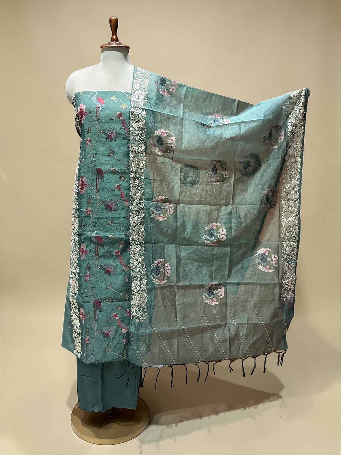 A rich teal green shade that adds depth and vibrancy. The detailed Parsi embroidery enhances its charm, making it ideal for elegant day functions and cultural events.