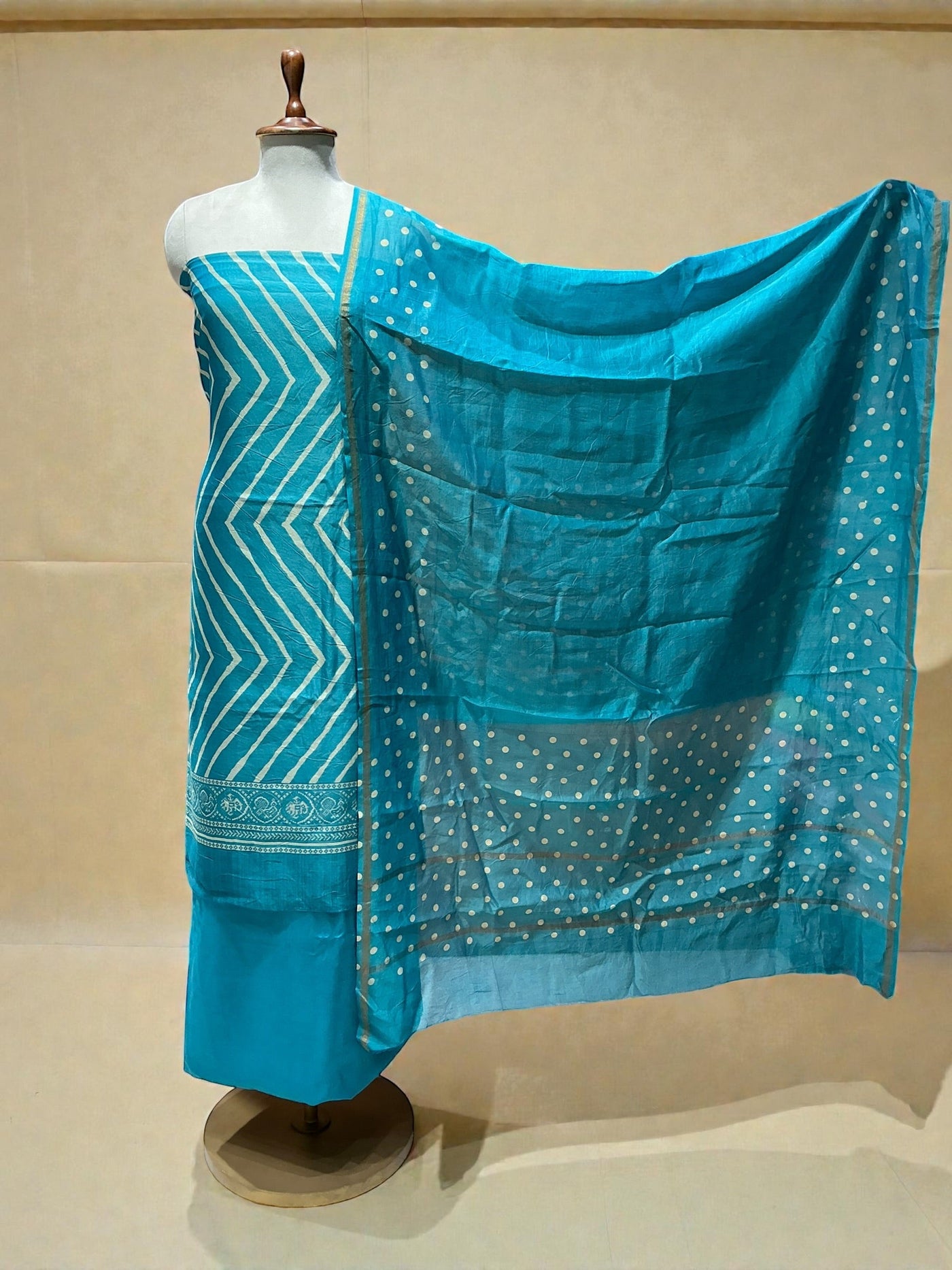 MAHESHWARI SILK SUIT IN PATOLA PRINT WITH POLKA DOTS DUPATTA