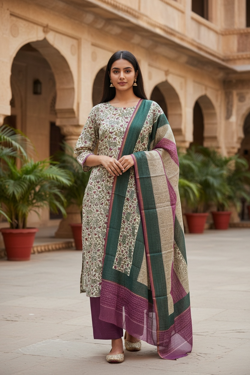 MAHESHWARI SILK SUIT WITH PICHWAI PRINT