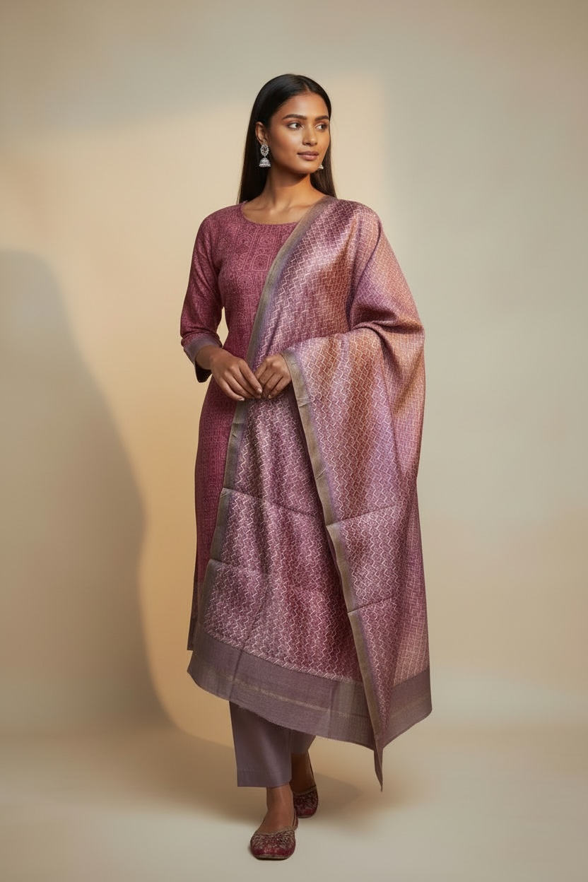 maheshwari silk suit with worli print