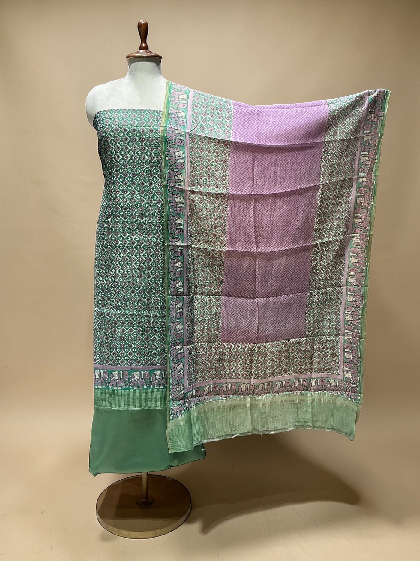 MUL CHANDERI SUIT IN BEAUTIFUL PRINTS - Seagreen