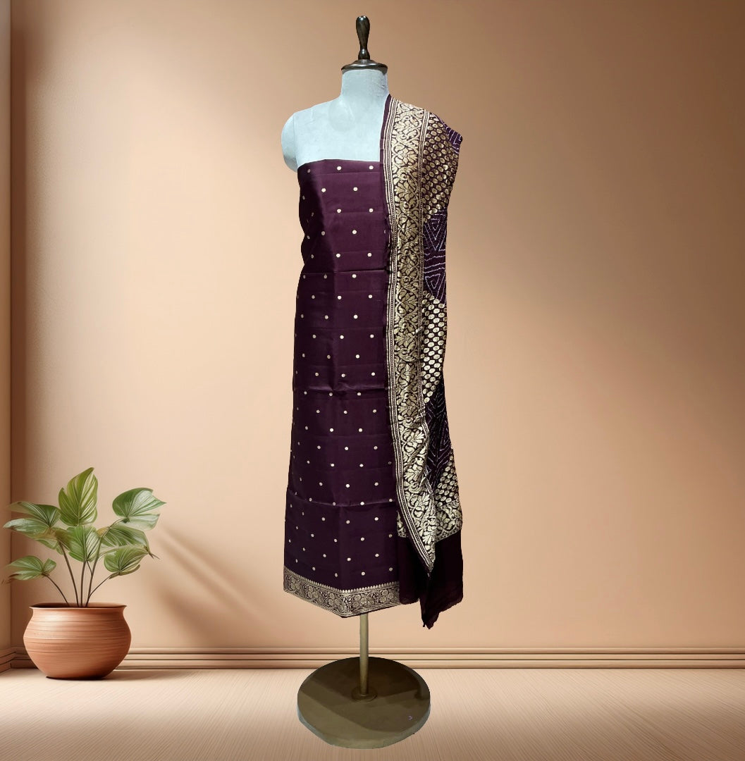 Pure katan Silk Suit With Bandhani Dupatta - COFFEE