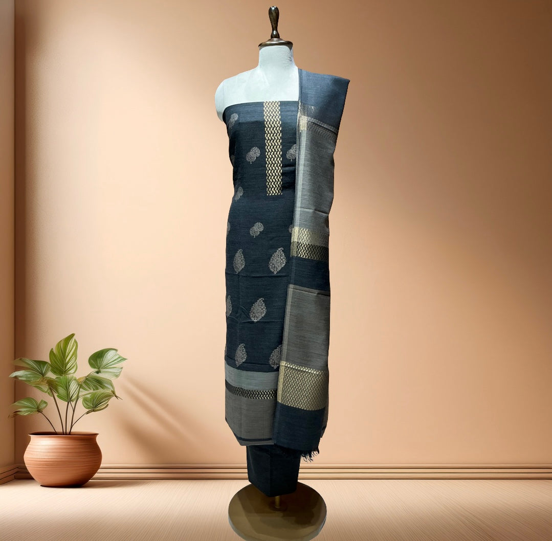 Pure pashmina weaving in luxurious pure pashmina woollen jacquard fabric with the same dupatta. A classic black colour that highlights elegance and fine craftsmanship.